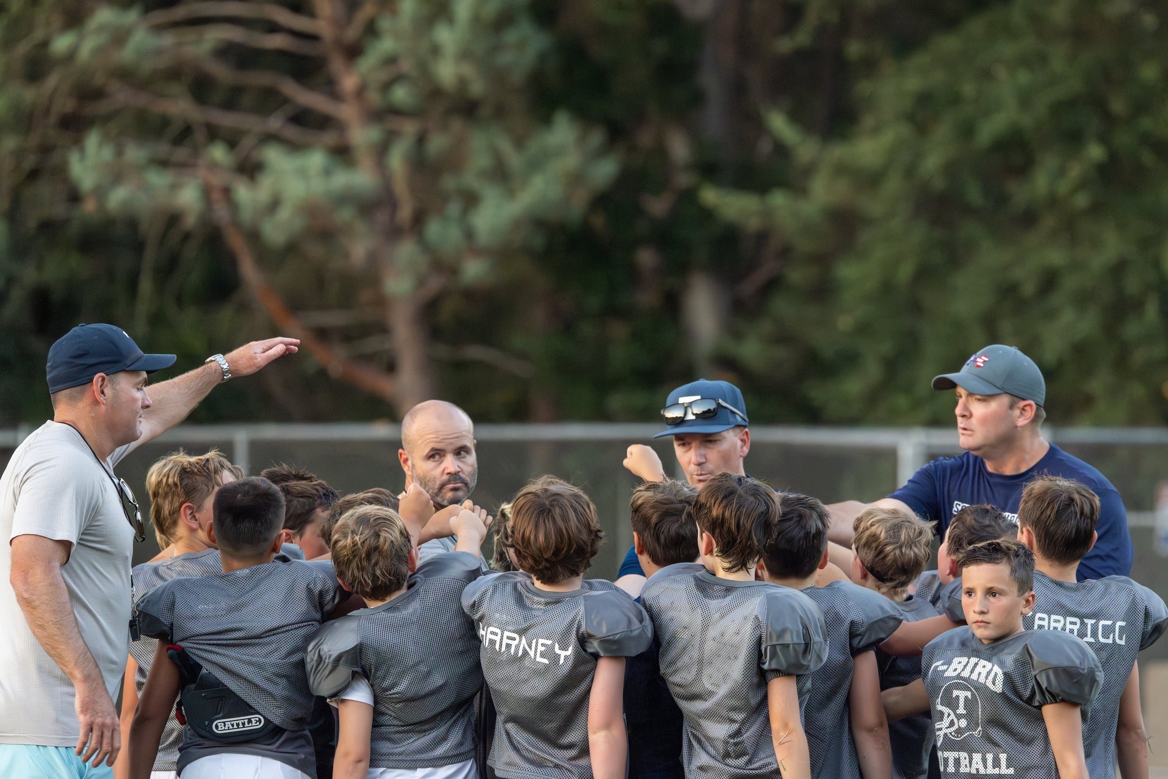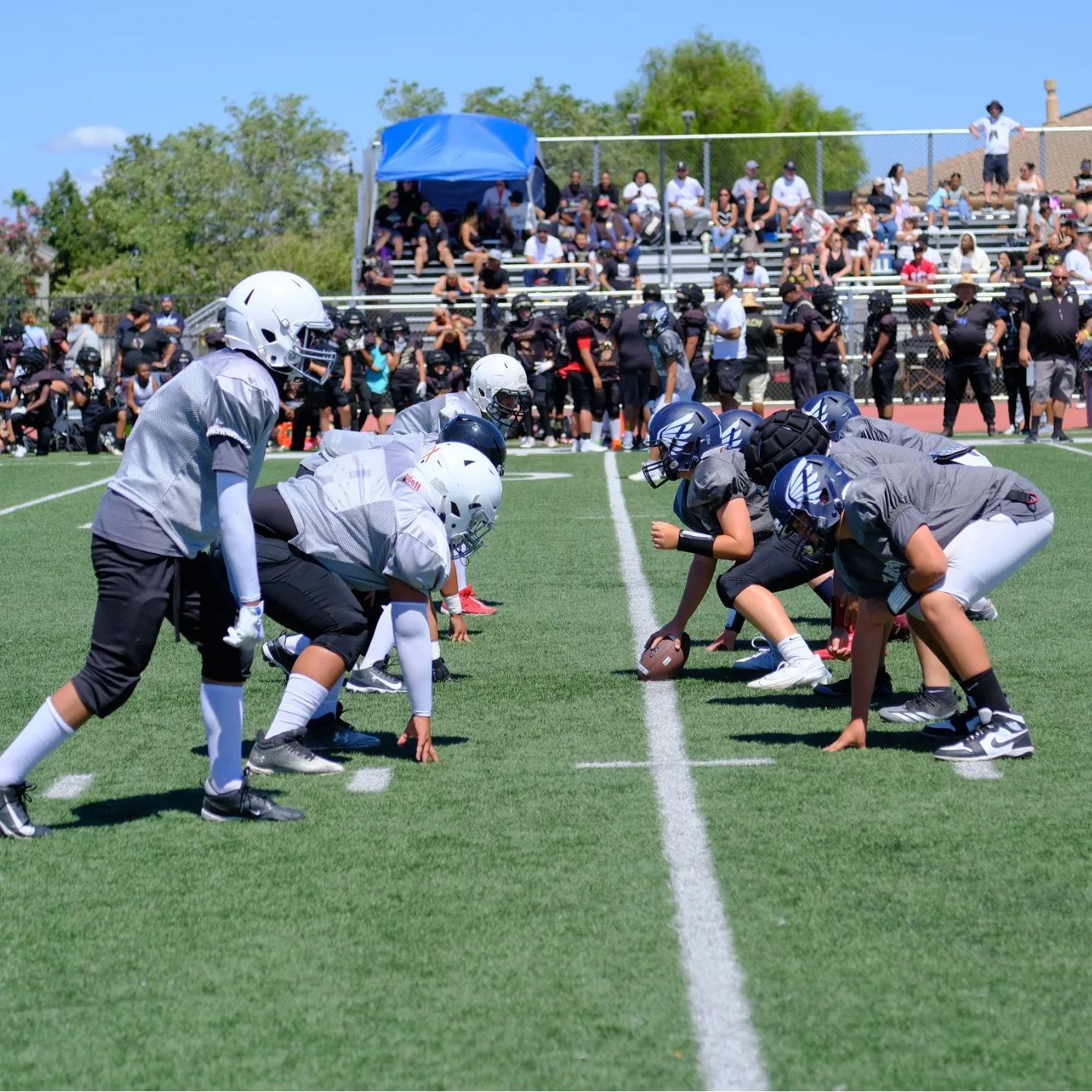Soccer and baseball teams often occupy these Los Cerros fields prior to 6pm, hence the stress on every practice minute matters. We have a wide range of coaches volunteering at the Development level. Coaches might be coming from a coaching Flag Football, where another coach might have 10 years of tackle experience. Another coach might have no experience, or a dad who played high school football just looking to volunteer one day a week. The key commonality is that tackle football is a commitment for all coaches, regardless of experience. We take that seriously for the success of your young athletes.