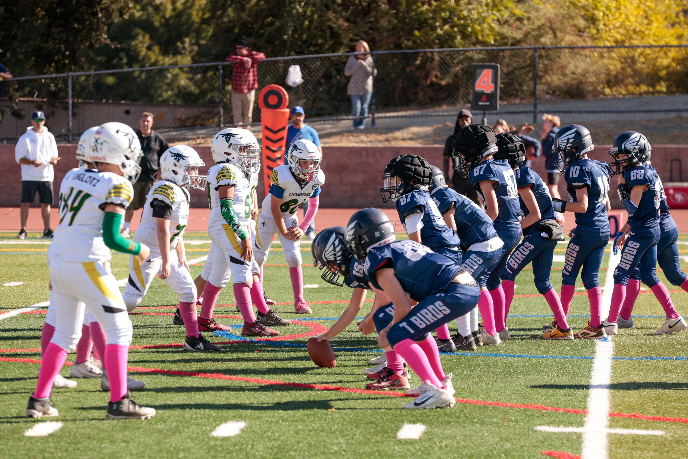 Coaches typically instruct parents to arrive two hours early to every game kick-off. For a 9am game, this means that all players should arrive by 7am. This also allows a buffer for players getting caught in traffic and or waking up late. Every T-Birds Head Coach is responsible for weighing in the opposing team’s roster ahead of each game. Each Coach carries a binder with EBYFC-certified player cards from week-to-week. These cards are each player’s ‘pass’ to play each week.