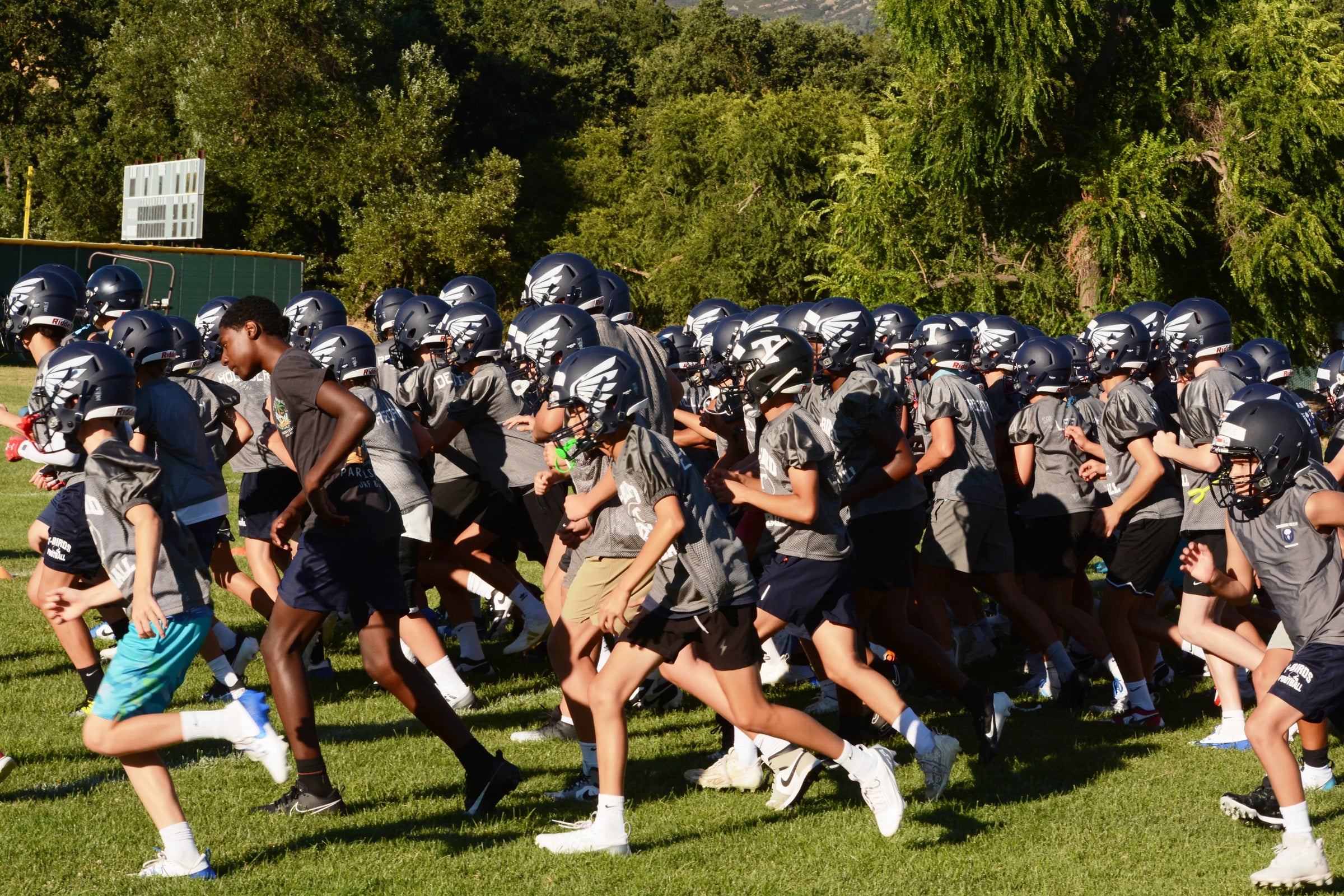 The week after the Jamboree, we will switch to three practices per week (Tue/Wed/Thu) leading up to your first game. This means that we will have a condensed practice schedule. In past seasons, we emphasized Offense on two days per week and Defense one day per week. We still incorporate tackling into our Offense days, but at a lower velocity.