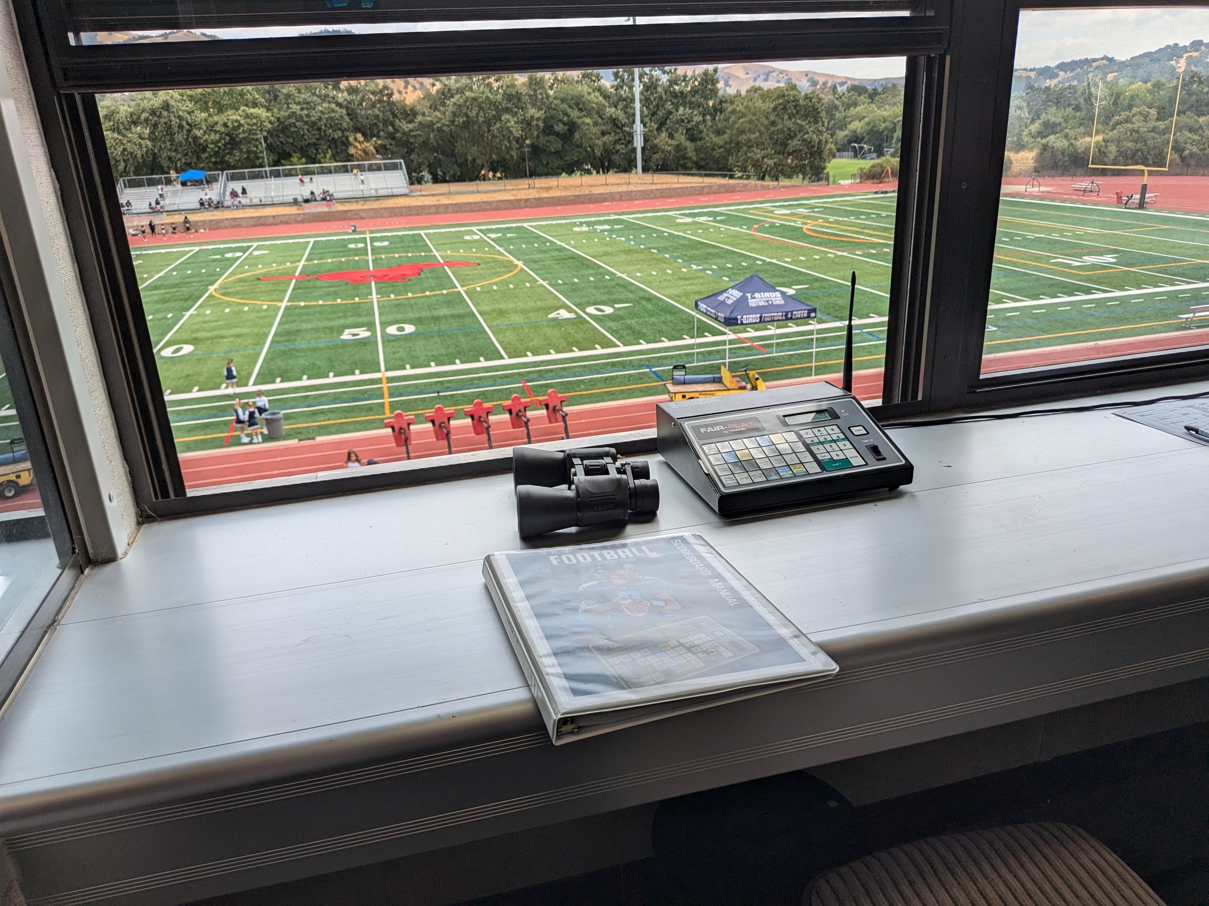 • Booth Game Spotter: No experience needed. You will be provided binoculars to spot which T-Bird and opposing player were in on the big play. You'll then relay this to the Game Announcer sitting next to you. i.e., "T-Birds #17 in on the tackle of Opposing team's #28."